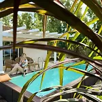 Von der Is Cheas Wine Farm Boutique Hotel aus können Gäste einen Blick auf den Pool genießen. Zur Ausstattung des Badezimmers gehören ein Bidet, eine getrennte Toilette und eine Dusche sowie ein Haartrockner und Handtücher.